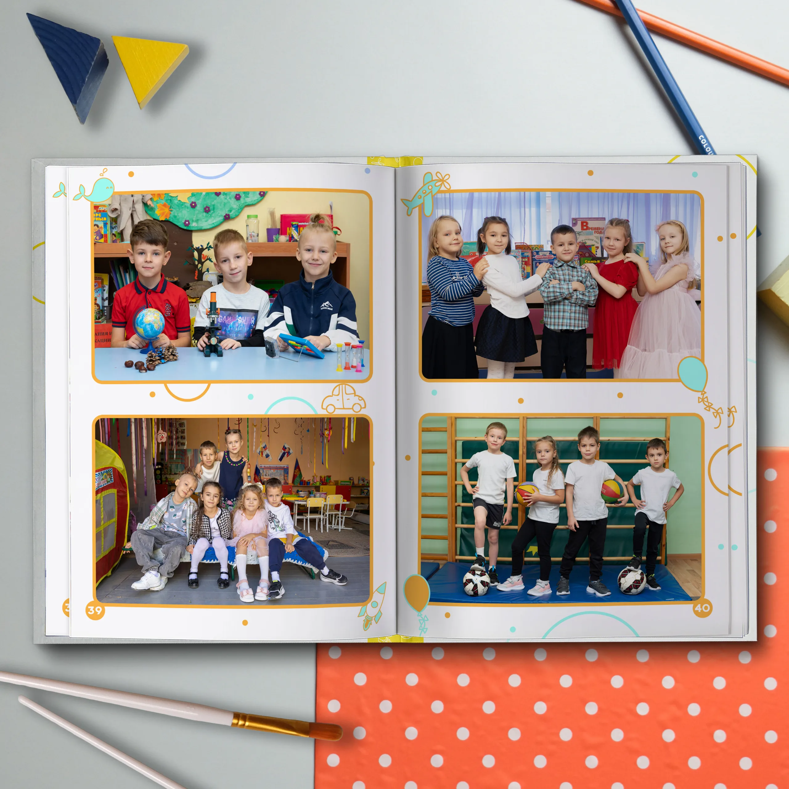 1ый разворот — виньетки педагогов и две общие фотографии